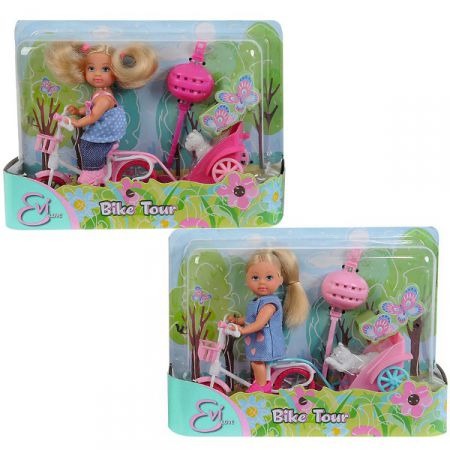 Laleczka Evi na rowerku z przyczepką, z pieskiem i z akcesoriami, 2 rodzaje.