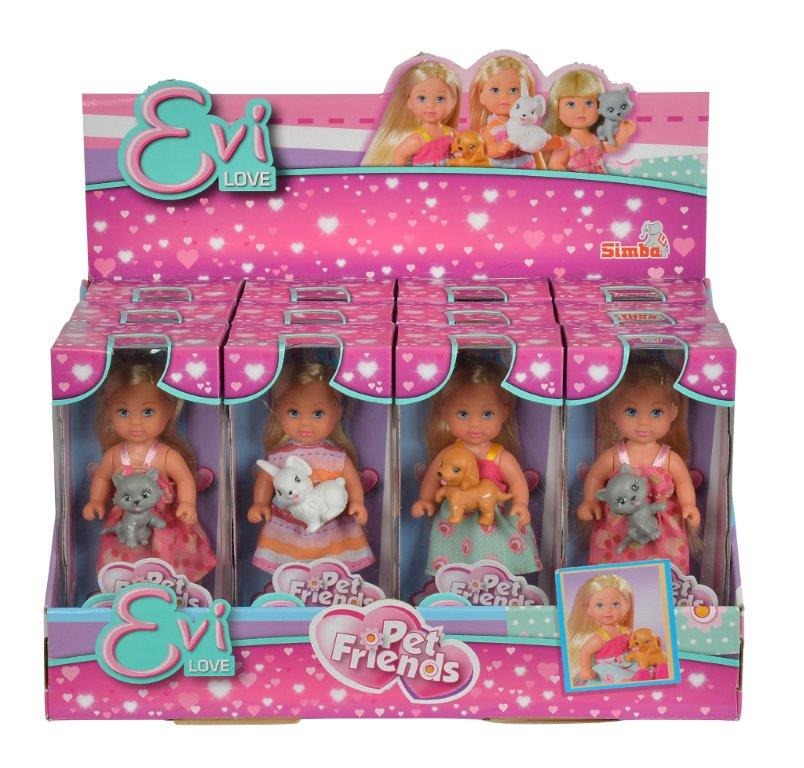 Laleczka Evi w letniej sukience, w zestawie z pieskiem, kotkiem lub króliczkiem
