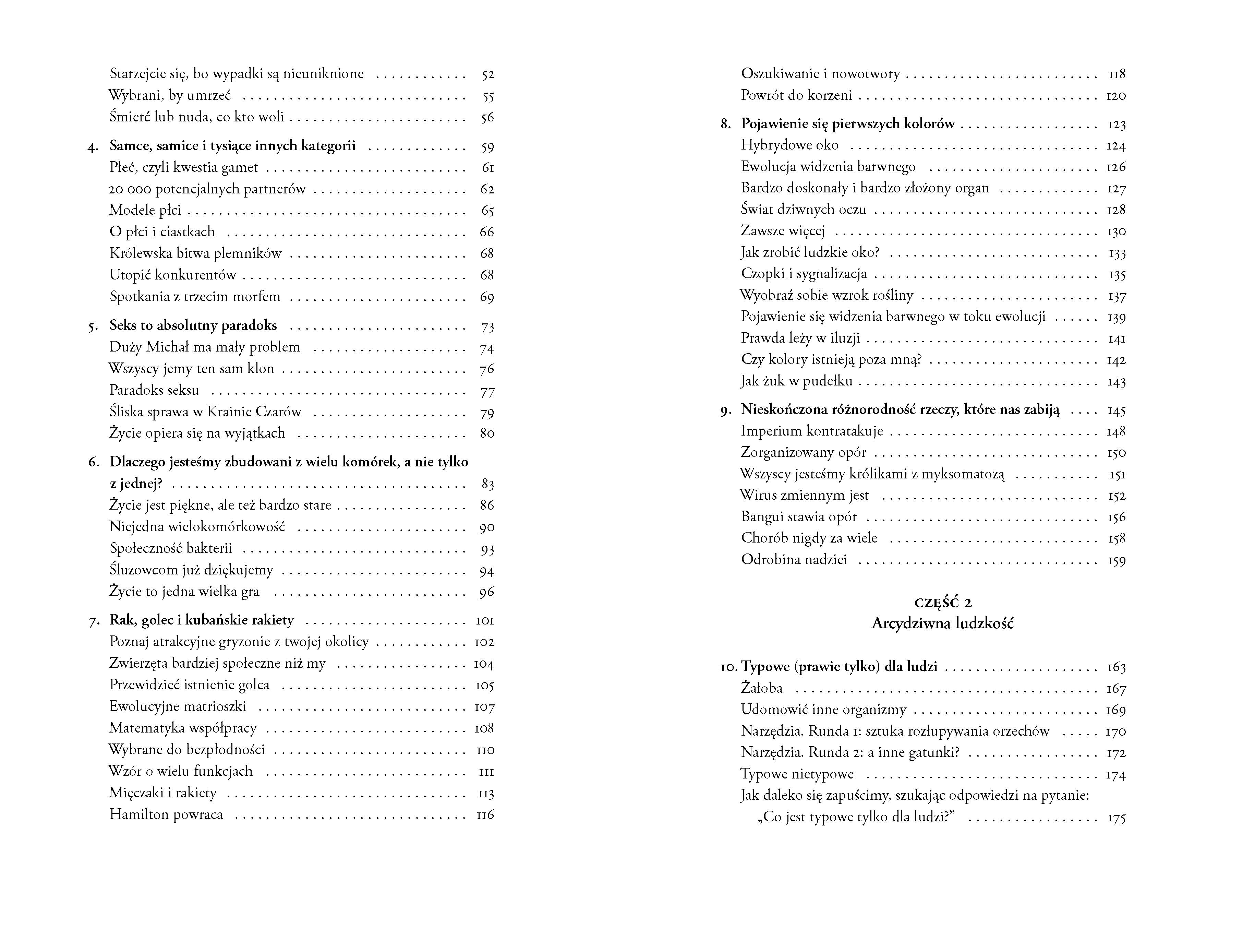Opis produktuZasady bezpieczeństwaLudzie nie lubią umierać.. A ewolucja, o dziwo, nie zrobiła nic, żeby temu zapobiec... i okazuje się, że miała do tego bardzo dobry powód. BIOLOGIA EWOLUCYJNA jest pełna prawdziwych olśnień. Pozwala zrozumieć nasze miejsce we wszechświecie. Potrafi też podważyć nasz stosunek do własnej tożsamości - do życia, śmierci, seksu, starości, do świadomości i do orgazmów. To najnowsze, ekscytujące odkrycia naukowe. Biologia ewolucyjna odpowiada na pytania, które dręczą i potrafią rozpalić wyobraźnię: Dlaczego niedźwiedzie polarne są białe, a ich kuzyni grizzly już nie? Czy istnieją powody, dla których do spłodzenia dziecka potrzebne są dwie osoby? Dlaczego nie wystarczy jedna? Albo dlaczego nie potrzeba ich siedemnastu? Po co komu starość? Dlaczego jądra goryla są małe, a szympansa duże? Dlaczego samiec błazenka (Amphiprioninae) po śmierci samicy zmienia płeć i zajmuje jej miejsce? Czy istnieją gatunki, które znalazły receptę na długowieczność? Czy kałamarnice olbrzymie (Architeuthis dux), których oczy osiągają średnicę 25 cm, czyli większą niż ludzka głowa, widzą dzięki temu lepiej? Czy aby na pewno jesteśmy ludźmi? Ta książka zawróci ci w głowie. Po jej lekturze spojrzysz na siebie zupełnie inaczej. Idealne połączenie zadziornego humoru, bezpretensjonalności i solidnej wiedzy. BIOLOGIA BEZ CENZURY! x