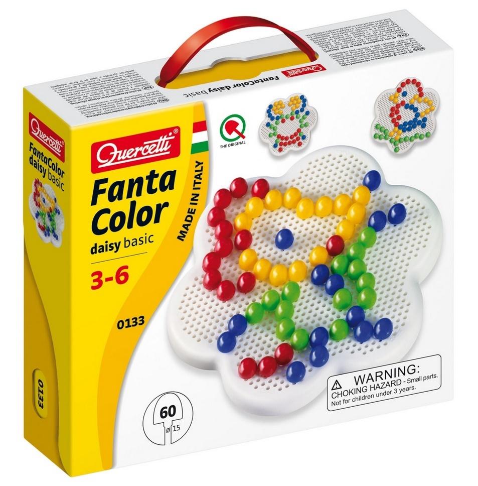 Tworzenie mozaiki poprzez wstawianie kołeczków w perforowaną tablicę jest wspaniałą i twórczą zabawą, która stymuluje rozpoznawanie kolorów, rozwija umiejętności manualne oraz koordynację ruchową. Wszystkie elementy wykonane są z tworzywa wysokiej jakości, są elastyczne i zmywalne, mają zaokrąglone brzegi, są nietłukące i bezpieczne. Zabawka zawiera 60 kołeczków o średnicy 15mm.Wiek 3-6 lat.