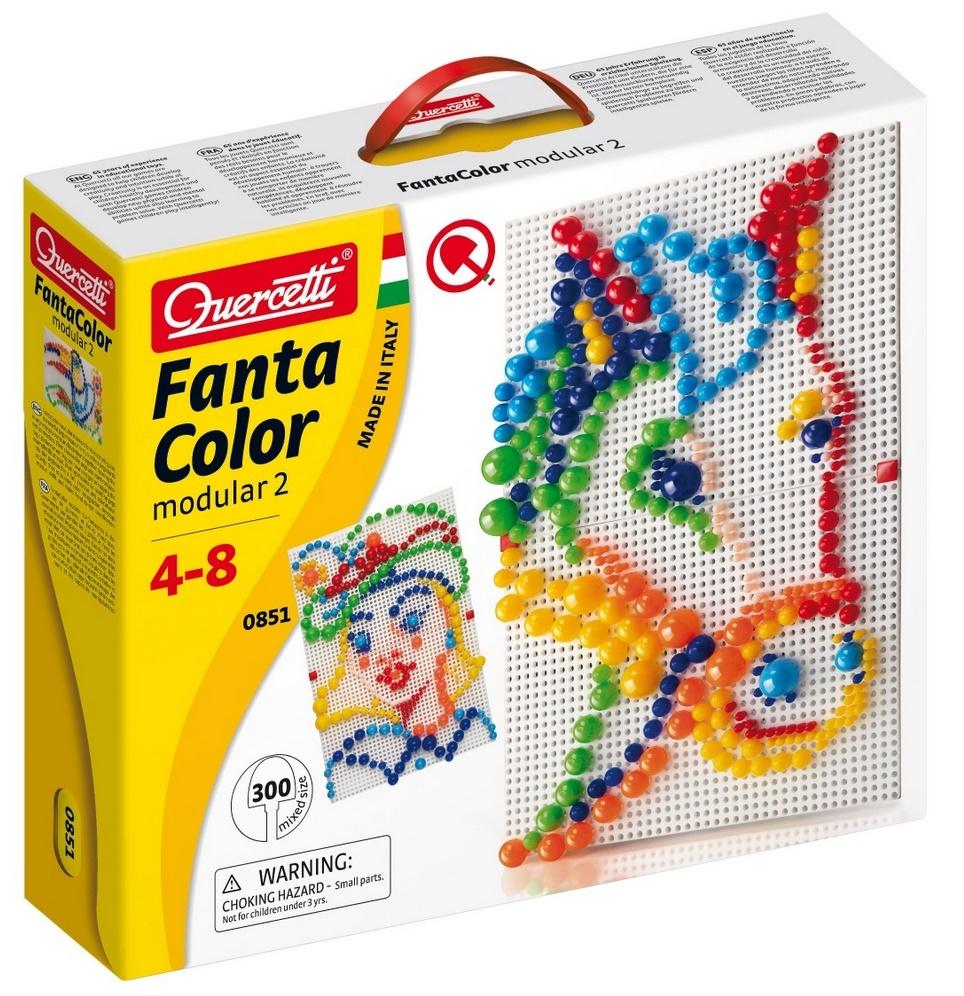 Fanta Color Peg Art służy do zabawy w tworzenie wielkich mozaik z kołeczków. Najpierw należy połączyć cztery płyty i zablokować je ze sobą. Następnie dobierz kołeczki i zacznij komponować oraz, wymyślając własne projekty lub kopiując ilustrowane przykłady. Tworzenie mozaiki poprzez wstawianie kołeczków jest czynnością kreatywną i edukacyjną, która stymuluje rozpoznawanie koloru, rozwija zdolności manualne i ćwiczy koordynację wzrokowo-ruchową.