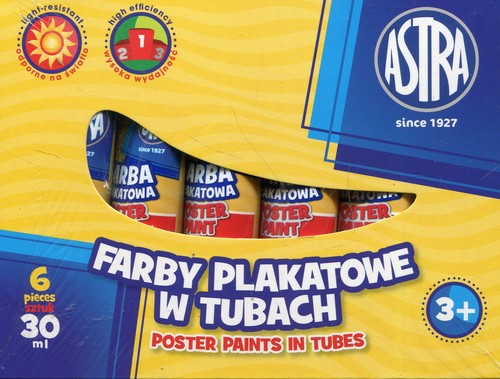 Farby plakatowe są farbami wodnymi, kryjącymi o czystych i intensywnych barwach. Ze względu na znakomitą przyczepność, nadają się do malowania na takich podłożach jak: papier, karton, drewno, ceramika, kamień. Wymalowane powierzchnie po wyschnięciu są matowe o intensywnych barwach, odporne na działanie światła i ścieranie. Wysoką jakość farb uzyskujemy dzięki wysokiej jakości pigmentom i spoiwom użytym do produkcji tych farb, oraz technologii produkcji.
