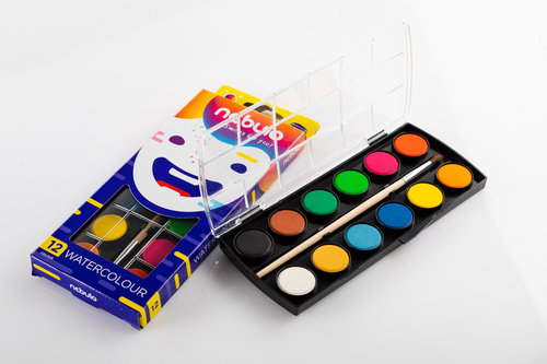 -  zestaw 12 farb akwarelowych o żywych kolorach