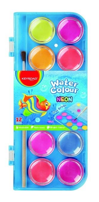 |   Farby akwarelowe KEYROAD z pędzelkiem neonowe 12 kolorów