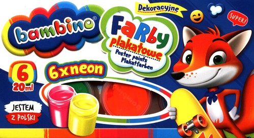 FARBY BAMBINO PLAKATOWE 6 KOLORÓW 20 ML NEON