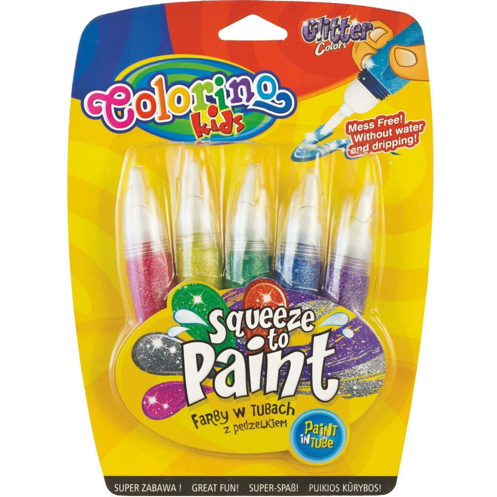 Farby Colorino w tubach z pędzelkiem brokatowe 5 kolorów