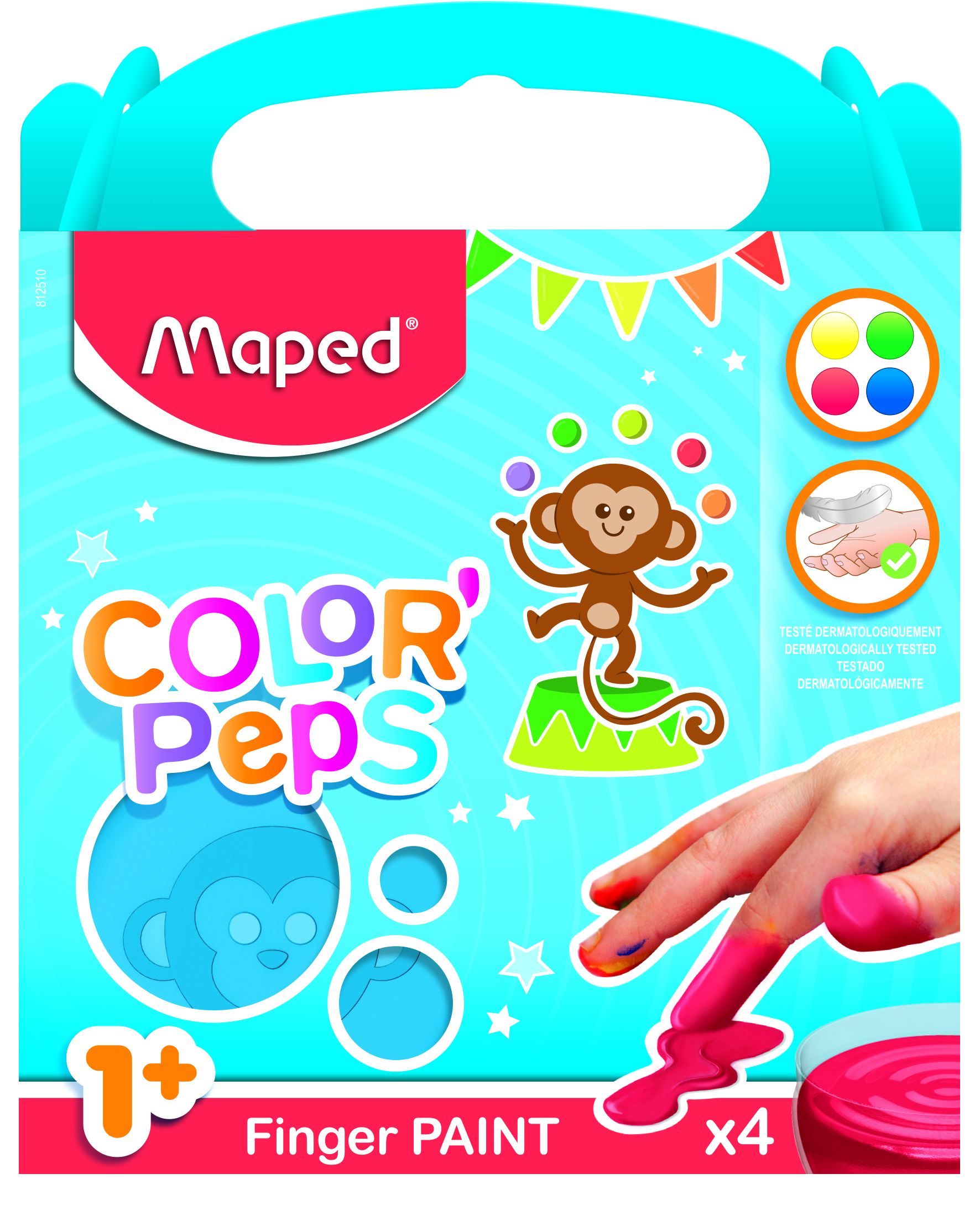 Farby Color'Peps do malowania palcami z linii EARLY AGE. Opakowanie zawiera 4 wysokopigmentowe, świetliste kolory o bardzo wysokich własciwościach kryjących. Gładka i kremowa konsystencja. Pakowane w kubeczki zawierające 80 g farby. Wygodna w użyciu przykrywka chroni farby. Testowane dermatologicznie. Odpowiednia dla dzieci od 1 roku życia. Elementy grafiki nawiązują do zabawy i upodobań najmłodszych nie pozostawiając wątpliwości dla kogo ten produkt jest dedykowany.