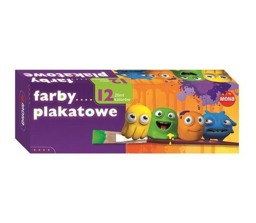 Farby plakatowe 12 kolorów 20ml eko MONA