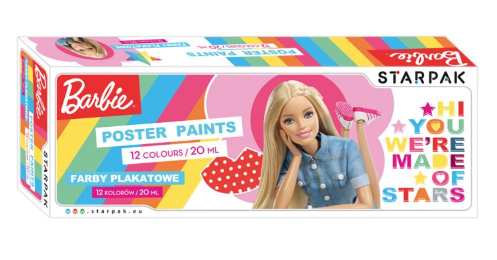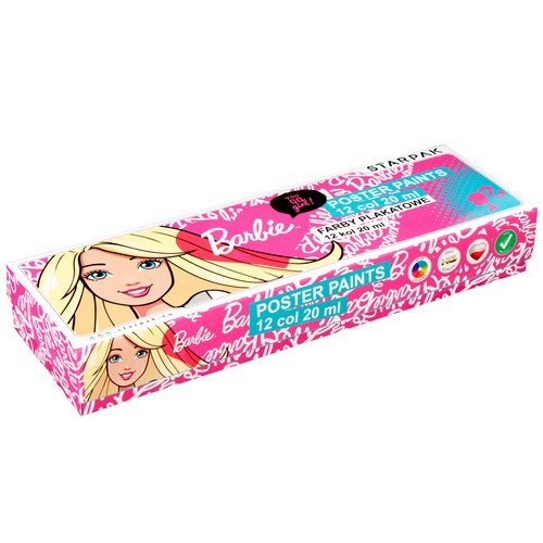 Farby plakatowe Barbie 12 kolorów po 20ml.