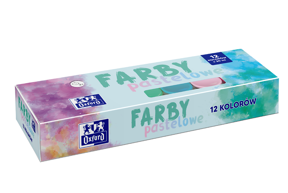 Opis produktuZasady bezpieczeństwa"Pastelowe farby plakatowe Oxford Kids doskonale sprawdzą się w każdej szkole czy przedszkolu. Poza intensywnymi kolorami i gęstą konstystencją Oxford stawia na wysoką jakość opakowań. W kubeczkach zastosowano pełny gwint, dzięki czemu wieczko zakręca się szczelnie, bez przekręcenia. Farby nie wysychają i można ich używać jeszcze dłużej bez utraty jakości. We wnętrzu opakowania umieszczono wskazówki mieszania kolorów, aby inspirować małych artystów. Ilość kolorów w opakowaniu nie stanowi już żadnego ograniczenia, w każdej chwili można stworzyć dowolną ilość nowych barw. Wesołe zwierzaki na opakowaniu z pewnoscią przyciągną uwagę najmłodszych. Dzięki gęstej konsystencji łatwo rozprowadzają się na takich materiałach jak papier, karton, ceramika, drewno czy kamień Dzięki pigmentom wysokiej jakości po wyschnięciu malowane powierzchnie są matowe i intensywnie kolorowe Farby bardzo dobrze mieszają się ze sobą tworząc nową paletę kolorów, co daje nieograniczone możliwości tworzenia Mogą być używane bez wody lub rozcieńczane z wodą Farby są odporne na działanie światła i ścieranie Są nietoksyczne, bezpieczne dla dzieci i łatwo zmywają się z małych rączek"