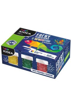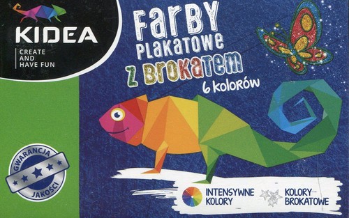 Opis produktuZasady bezpieczeństwaFarby plakatowe z brokatem 6 kolorów x 20ml. Duża ilość brokatu, intensywne, niespotykane barwy, dobrze kryjące, w zakęcanych pojemnikach, wydajne. x