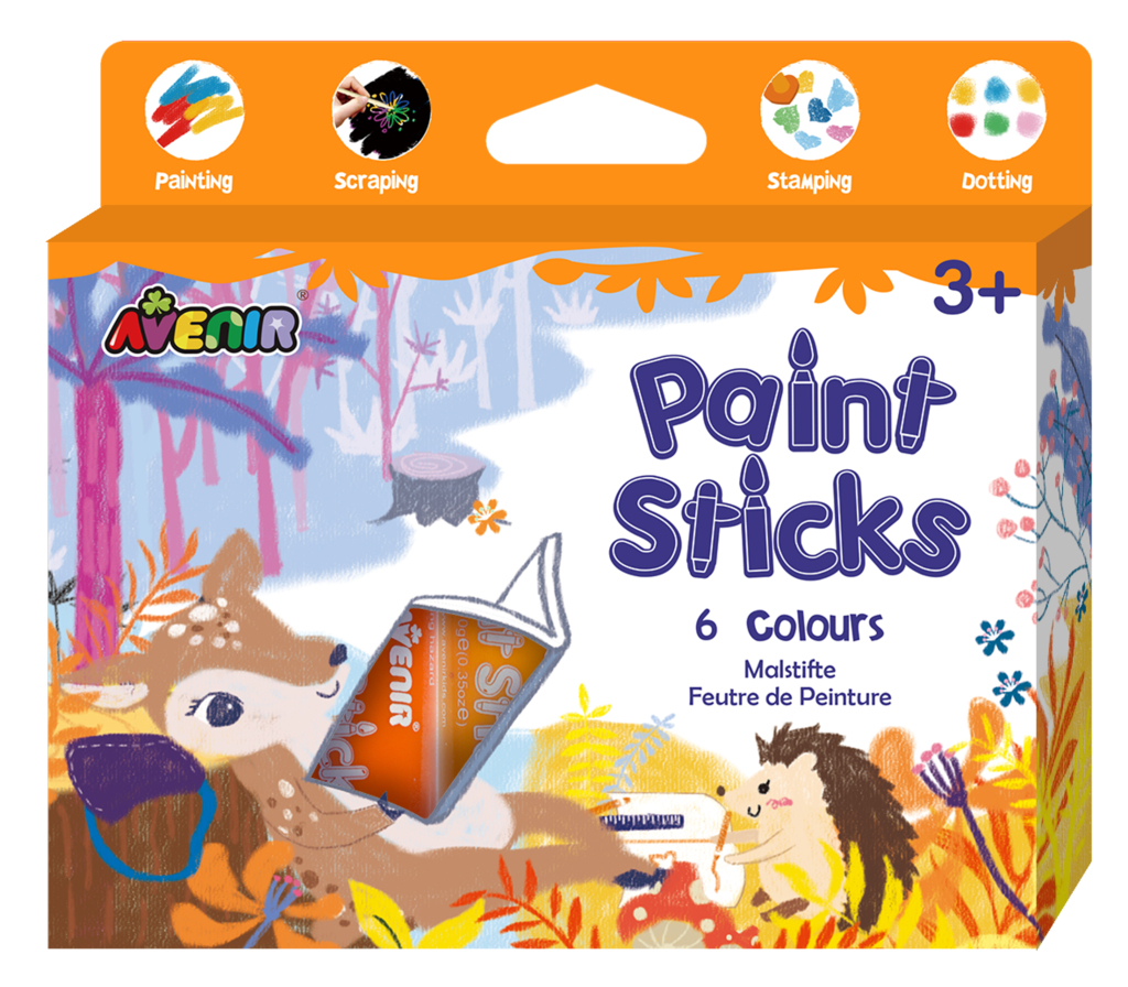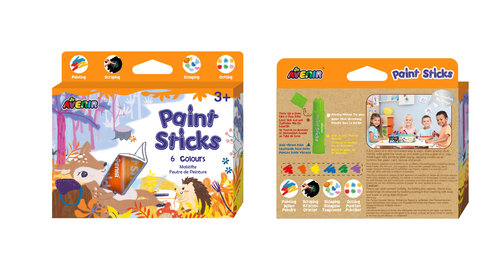 Zabawny, czysty i bardzo wygodny sposób malowania.Rozpuszczalna w wodzie, przyjazna dzieciom, trwała farba, którą maluch operujetak jak tubką kleju. Użyj tych super jedwabistych farb, aby tworzyć wyraźne,olśniewające kolory na powierzchniach, takich jak papier, tektura, płótno idrewno. Farba w sztyfcie wysycha w mniej niż 60 sekund - malowanie bezbałaganu. Świetny prezent dla każdego dziecka, które kocha malować ikolorować. W zestawie: 6 farb wsztyfcie Wiek:3+ x