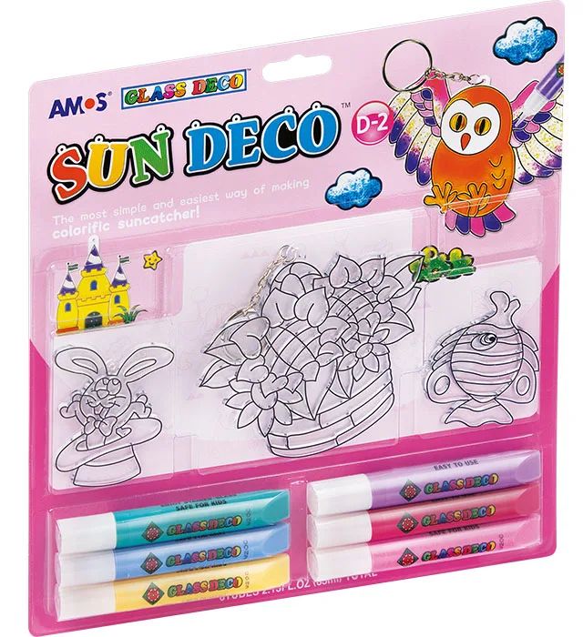 - wysokiej jakości farby witrażowe przeznaczone do samodzielnego wykonania witraży oraz dekoracji szkła, porcelany, luster, płytek ceramicznych i tworzyw sztucznych- wyraziste kolory- łatwa aplikacja farb- odklejalne- gotowy, wyschnięty wzór można przenosić z folii na inne powierzchnie- możliwe jest łączenie farb witrażowych z innymi technikami: klejem z brokatem, Ciasto-Plasto- zawiera: 3 gotowe witraże-breloki do pomalowania, 6 kolorów farb- pojemność: 6 x 10,5 ml- zgodne z normą CE i z wymaganiami ACM Institute INC. USA