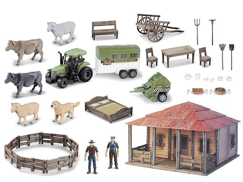 Opis produktuZasady bezpieczeństwazestaw farma, traktor z przyczepą, budynek, rolnicy, zwierzęta z głosem, zagroda; 49x44x10cm, Box x