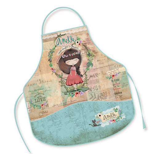 Fartuszek do prac plastycznych w uroczej odsłonie Anekke. Posiada wiązanie z tyłu, z przodu dwie kieszonki.