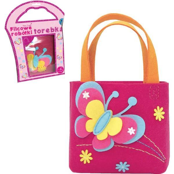 Uszyj własną torebkę! Zestaw zawiera: filcowe części torebki gotowe do zszycia wycięte, filcowe elementy dekoracyjne nici bawełniane w dwóch kolorach szczegółową instrukcję.