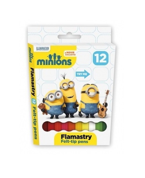 Flamastry, które powinny się znaleźć w plecaku każdego ucznia. Intensywne kolory, długa żywotność, łatwe zmywanie ze skóry i spieranie z odzieży, wentylowana skuwka, odporna na wciśnięcia końcówka pisząca potwierdzają wysoką jakość produktu. Flamastry Minionki produkowane są w zgodności z dyrektywą Parlamentu Europejskiego i Rady w sprawie bezpieczeństwa zabawek oraz rozporządzeniem Ministerstwa Gospodarki w sprawie zasadniczych wymagań dla zabawek, co gwarantuje ich bezpieczeństwo.