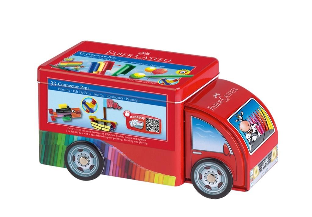 intensywne kolory spieralne z większości standardowych tkanin dzięki specjalnym klipsom pisaki można ze sobą łączyć w kreatywne konstrukcje pisaki w atrakcyjnym, metalowym pudełku w kształcie autka towarowego 33 kolory x