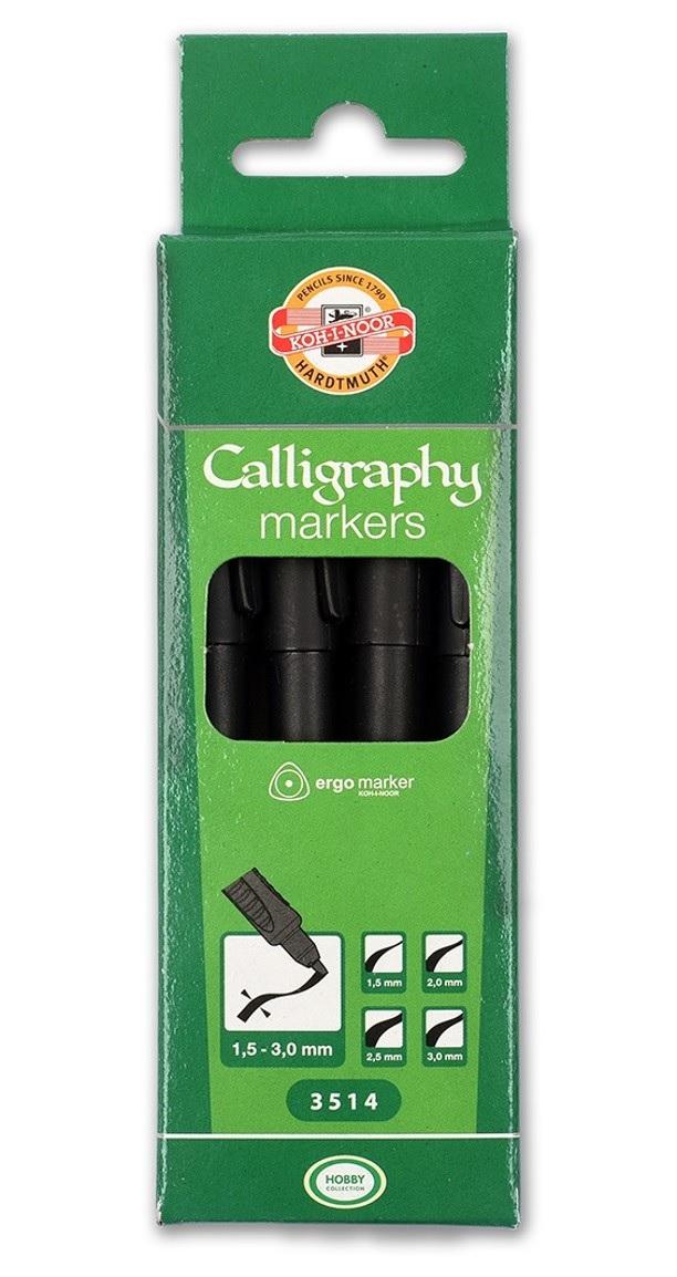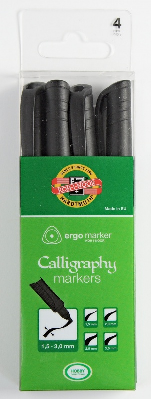 Pisaki kaligraficzne posiadają skośnie ściętą końcówkę w czterech różnych grubościach: 1,5 mm, 2 mm, 2,5 mm oraz 3 mm. Zawierają wodny, bezwonny, tusz w kolorze czarnym.