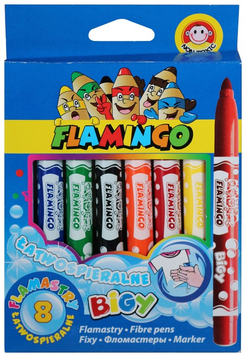 Flamastry łatwospieralne Flamingo Jumbo 8 kol.