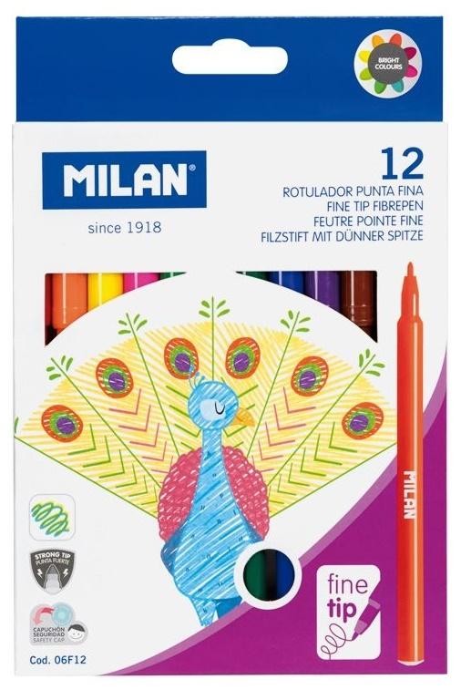 Flamastry Milan okrągłe z cienką końcówką 12 kolorów w kartonowym opakowaniu