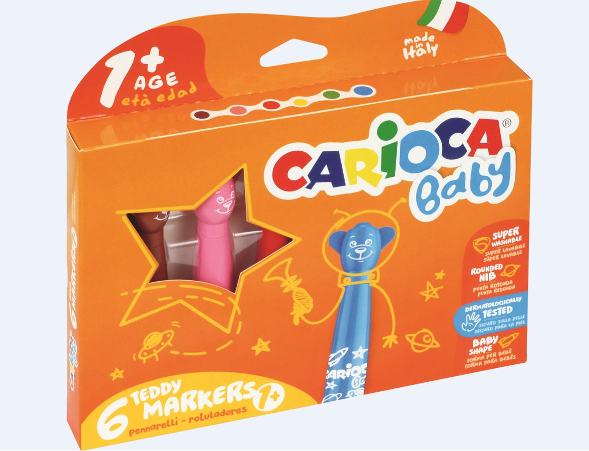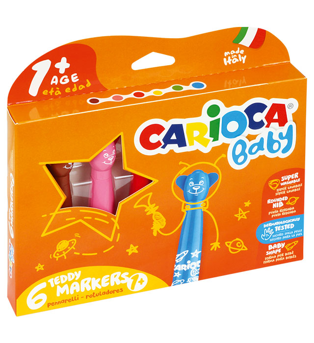 - dla dzieci od 2 roku życia (do 3 roku życia pod nadzorem opiekuna)- zabawne zatyczki w formie główki misia zachęcają dzieci do zamykania pisaków- zdobiony obrazkami korpus w rozmiarze Jumbo łatwy do uchwycenia dla małej rączki- tusz łatwy do usunięcia ze skóry lub tkaniny za pomocą samej wody- końcówka wyposażona w blokadę- nie ma możliwości wciśnięcia jej do środka- owalna końcówka bardzo mało wystaje z obsadki- trudno ją ugryźć lub zniszczyć przez uderzenia- zgodne z normą CE- grubość linii 3-4 mm