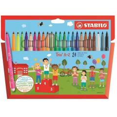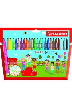 FLAMASTRY Z TRÓJKĄTNYM UCHWYTEM STABILO TRIO A-Z. KREATYWNOŚĆ OD A DO Z. Ergonomiczny, trójkątny uchwyt oraz mocna, odporna na złamanie końcówka.Flamastry posiadają wentylowaną skuwkę oraz łatwospieralny tusz.Kartonowe etui z zawieszką. 24 szt.