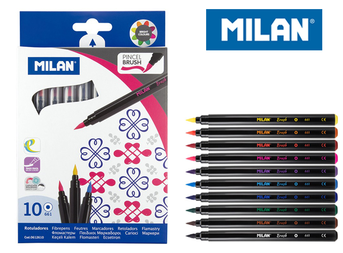 Flamastry MILAN z końcówką pędzelkiem 10 kolorów.