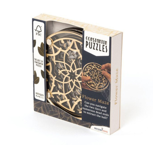 Jean Claude Constantin jest niewątpliwie jednym z najbardziej zapracowanych projektantów łamigłówek ostatnich trzydziestu lat. Wyjątkowe i różnorodne pomysły, które powstają w jego głowie, przemieniają się w unikalne i wizualnie zachwycające projekty. Łamigłówki Jean Claude'a uznawane są za bardzo wymagające. Aby je rozwiązać, będziesz potrzebował dużej aktywności szarych komórek, odpowiedniej koncentracji i odrobiny wyobraźni. Recent Toys to producent łamigłówek z Holandii. Jak sami o sobie mówią: Tworzą zagadki dla wszystkich. Jeżeli lubisz matematykę, logikę, układanie wzorów lub po prostu jesteś cierpliwy i wytrwały, to na pewno znajdziesz coś dla siebie! Choć wszystkie łamigłówki są unikatowe to mają one następujące cechy wspólne: 1. Prostota zagadki są łatwe do wytłumaczenia. Nasz umysł ma się skupić na rozwiązaniu łamigłówki, a nie na zrozumieniu zasad. 2. Mądrość łamigłówki są zaprojektowane tak, aby zmusić nasz umysł do poszerzenia horyzontów i otwarcia na nowe pomysły. 3. Wytrzymałość łamigłówki zbudowane są z odpowiednich materiałów. Elementy można przesuwać z wyjątkową łatwością. Chodzą płynnie, szybko i się nie zacinają. Podejmij wyzwanie! Popraw kondycję swojego umysłu! ZAWARTOŚĆ: łamigłówka Flower Maze (wymiary: 13x13x2,5 cm) książeczka x