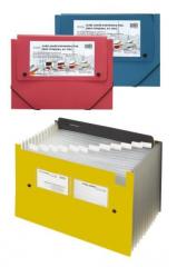 Teczka A4 z 13 kieszeniami zamykana na zatrzask, nowy opatentowany mechanizm przesuwanej pokrywy.
