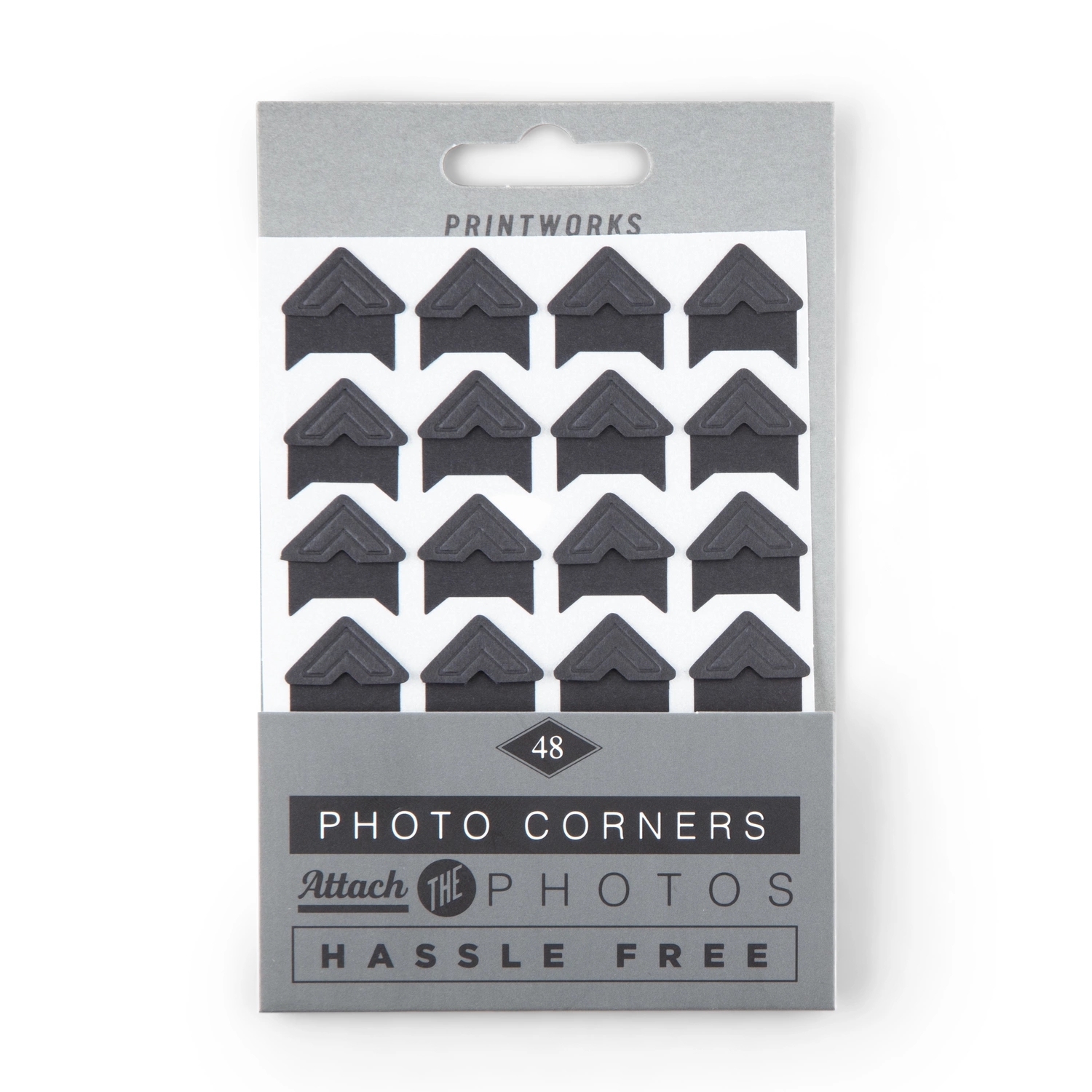 Dołączaj swoje zdjęcia bezproblemowo dzięki czarnym, matowym, przyklejanym narożnikom. Zabezpiecz swoje piękne wspomnienia w albumach ze zdjęciami PRINTWORKS. W opakowaniu znajduje się 48 narożników do zdjęć. x