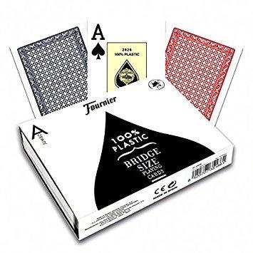 Komplet dwóch 100% plastikowych talii kart w wymiarze bydżowym,