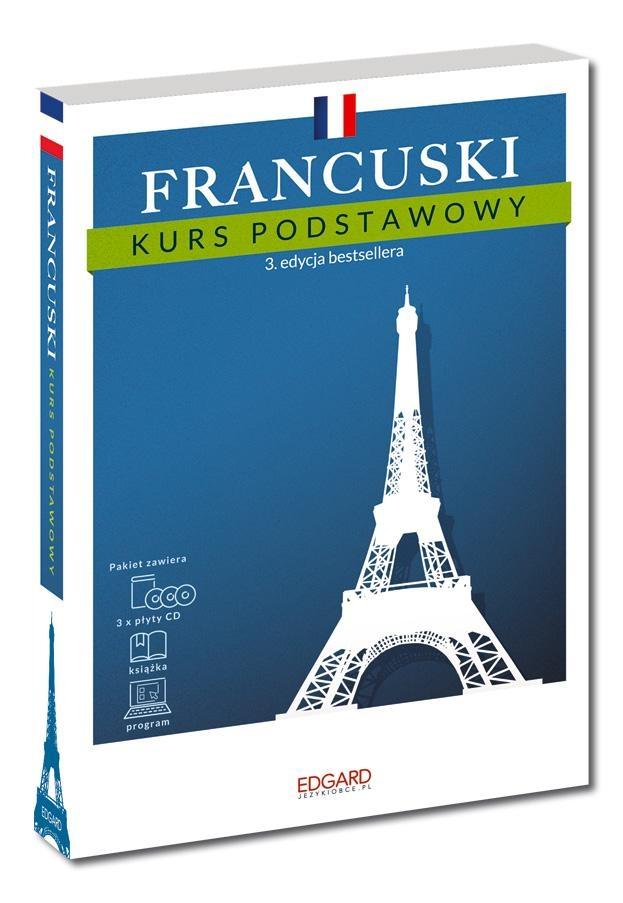książka + 3 płyty CD + programZacznij mówić i czytać po francusku! W najnowszym wydaniu unikalnego kursu dla początkujących znajdziesz wszystko, czego potrzebujesz do samodzielnej i skutecznej nauki: obszerny podręcznik w nowoczesnej szacie graficznej, nagrania native speakerów z tłumaczeniami oraz wciągające ćwiczenia w programie komputerowym.Książka (208 str.):- 39 ciekawych lekcji poznaj słownictwo i podstawy gramatyki- 1500 słów, wyrażeń i zdań przydatnych na co dzień zrób zakupy, kup bilet, zapytaj o drogę- teksty, dialogi, ciekawostki oraz słowniczek francusko-polski- ćwiczenia utrwalające z kluczem odpowiedzi i rozdziały podsumowujące ucz się aktywnie i trwale zapamiętujWysokiej jakości nagrania:- ponad 125 min nagrań native speakerów poznaj francuską wymowę- nagrania z tłumaczeniami powtarzaj za lektorem- słuchaj i ucz się w drodze do pracy, na siłowni, w samochodzieProgram komputerowy:- ćwiczenia interaktywne utrwalaj i powtarzaj materiał- gry językowe nawet nie zauważysz, jak zapamiętasz słówka- testy podsumowujące dowiedz się, ile już umiesz- wygodne generowanie playlist nagrań mp3 twórz własne playlisty i zapamiętuj szybciej