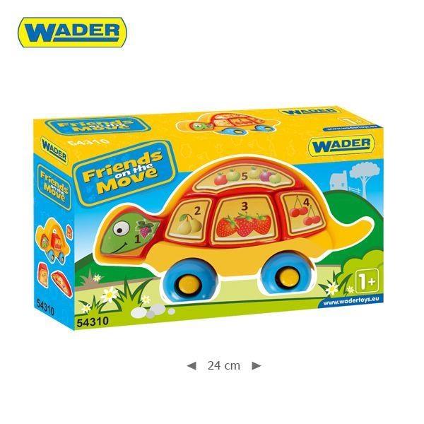 Z edukacyjnym żółwikiem dziecko uczy się cyferek, poznaje kolory oraz owoce. Dodatkowo „pancerzyk“ żółwika składa się z czterech wyciąganych elementów o różnych kształtach, które tworzą mini układankę. Dziecko może je z żółwika wyjmować i układać z powrotem w odpowiednie miejsca. Żółwik został również wyposażony w kółka, dzięki czemu można go pchać lub ciągnąć na sznurku, będzie idealnym kompanem do zabawy