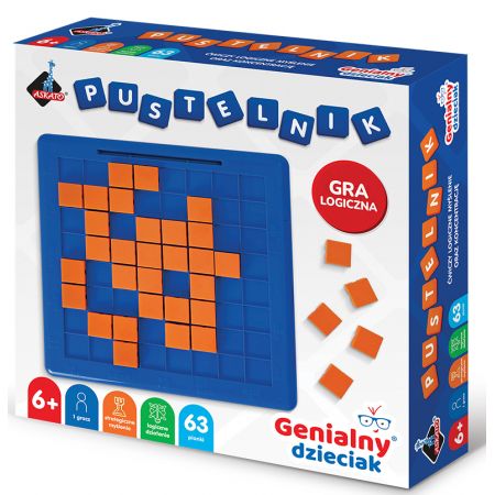 Opis produktuZasady bezpieczeństwa"Gra Pustelnik w swoich głównych zasadach oparta jest na XVII-wiecznej , szeroko znanej i lubianej grze Samotnik. W odróżnieniu od Samotnika, w grze Pustelnik gracz może samodzielnie i dowolnie tworzyć wersje gry w oparciu o plansze o wymiarach 8x8 i dołączone do niej pionki. Gracz może również zapełnić całą planszę, zdjąć jednego (lub więcej) dowolnego pionka i rozpocząć nową, wciągającą rozgrywkę z własną logiką i koncentracją. Zasady gry: celem gry jest zostawienie na planszy jak najmniejszej liczby pionków. Idealnym rozwiązaniem jest pozostawienie jednego pionka, najlepiej w centrum. Pionka bije się przeskakując go w pionie lub w poziomie w dowolnym kierunku. Nie można poruszać się na ukos oraz nie można bić kilku pionków w jednym ruchu. Zbity pionek zostaje z planszy usunięty. Wymiary opakowania : 25x6.5x25 cm Wiek 6+"