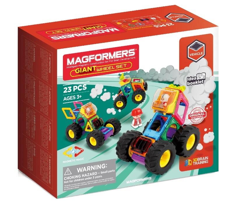 Opis produktuZasady bezpieczeństwaMAGFORMERS GIANT WHEEL SET to klocki z wbudowanymi silnymi magnesami neodymowymi, które zawsze się przyciągają. Wystarczy zbliżyć do siebie ściankami dwa klocki, a one natychmiast ze sobą się połączą. Za pomocą klocków wzorowanych na kształt figur geometrycznych można zbudować wspaniałe trójwymiarowe budowle. W skład zestawu wchodzą: 4 trójkąty, 8 kwadratów, 2 romby, 1 superkwadrat, 2 kwadraty z wypełnieniem, 1 prostokąt, 1 postać i jej nakrycie głowy, 2 osie pojazdu oraz 1 zderzak.