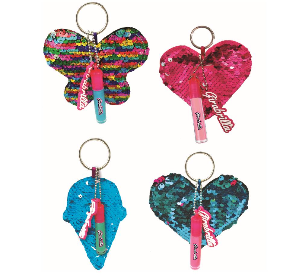 Brelok z mieniącymi cekinami, błyszczykiem i ozdobnym pullerem.