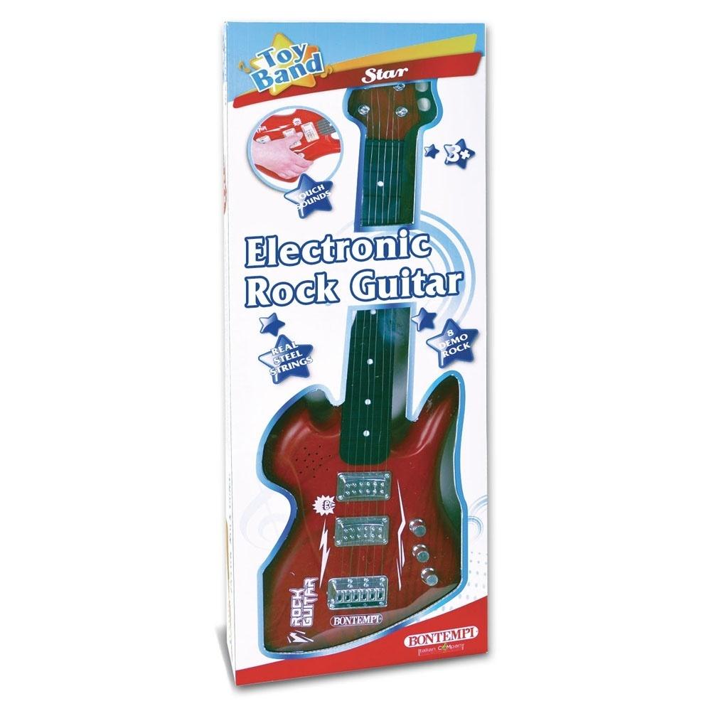 Gitara rockowa o wysokości 62 cm z 6 metalowymi strunami, które wydają dźwięk po naciśnięciu. Istnieje możliwość uruchomienia 8 wcześniej wgranych melodii. Zabawka zasilana dzięki 2 bateriom AA, które nie są dołączone do zestawu.