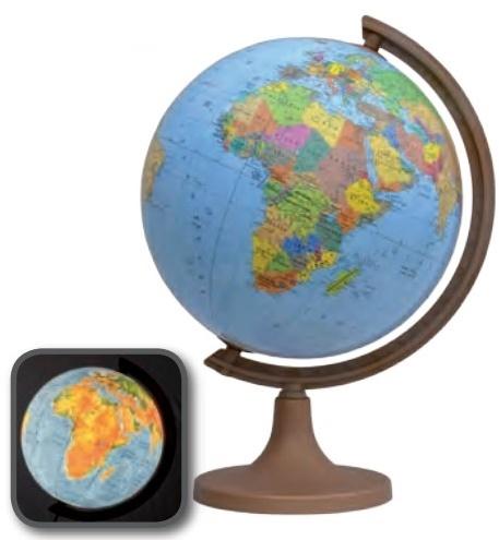 Opis produktuZasady bezpieczeństwaJest to globus zawierający mapę polityczną Świata, natomiast po podświetleniu pojawia się mapa fizyczna. Więc na jednym globusie mamy 2 mapy. Świetnie nadaje się do przyswajania geograficznego położenia nie tylko państw, ale także możemy znaleźć szczyty gór, niziny, wyżyny itp. x