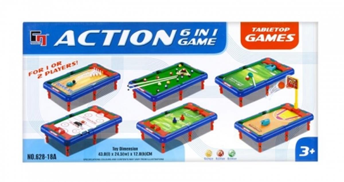 Gra 6w1 MEGA CREATIVE daje wiele możliwości. Możesz zagrać w cymbergaja, bilard, kręgle, minigolfa, koszykówkę lub piłkę nożną - na pewno będziesz zadowolony podczas każdej z tych rozgrywek! W zestawie znajduje się stół oraz akcesoria, dodatki i nakładki dedykowane poszczgólnym grom, umożliwiające szybką zmianę pola do gry. Produkt przeznaczony dla dzieci w wieku: 3+. Nie wymaga zasilania bateriami.
