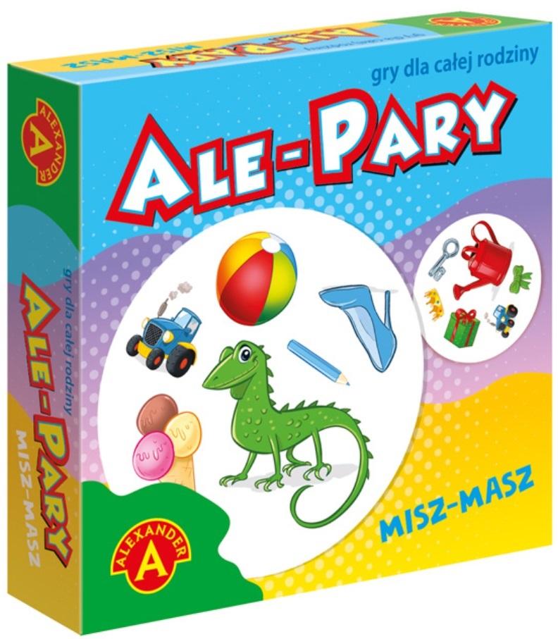 Opis produktuZasady bezpieczeństwaAle Pary- Misz-masz to szybka, prosta gra karciana w której wygrywa ten kto wykaże się największą spostrzegawczością. W opakowaniu znajdziemy zestaw 31 kart z 6 obrazkami na każdej z nich. Dwie dowolne karty zawsze mają po jednym wspólnym obrazku, ale żeby nie było zbyt łatwo, obrazki te często mają różną wielkość. Gra polega na jak najszybszym znalezieniu wspólnego obrazka. W zależności od wariantu wygrywa ten, kto zdobędzie najwięcej kart, bądź jak najszybciej pozbędzie się wszystkich. Zawartość opakowania