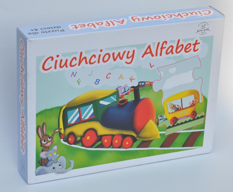 Ciuchciowy alfabet rusza w daleką podróż przez góry, rzeki, miasta. Podróż ta pozwala poznawać literki, zdobywać wiedzę, która przyda się przy nauce czytania. Abecadło to wesoła zabawa w dopasowaniu wagoników z literkami powiązanymi z nazwą zwierząt według kolejności alfabetu. Z 26 dużych elementów układamy abecadło jak pociąg o długości około 2 metrów!