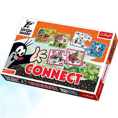 Connect - KrecikW tym wydaniu wszystkie dzieci do zabawy zaprasza znany i lubiany Krecik. Poznawanie z nim otaczającego świata to prawdziwa frajda! Gra polega na dopasowywaniu do siebie dwóch puzzlowych elementów, które muszą zgadzać sie kolorem i atrybutem na obrazkach. Podczas aktywności dziecko rozwija spostrzegawczość i zdolności manualne, a także ćwiczy koncentrację. Dużym atutem gry jest piękna grafika i wysoka jakość wykonania.Gra przyjazna dziecku!Elementy gry wykonane są z płótnowanego papieru pokrytego ekologicznymi farbami spożywczymi, co gwarantuje dzieciom bezpieczną zabawę przez długi czas.