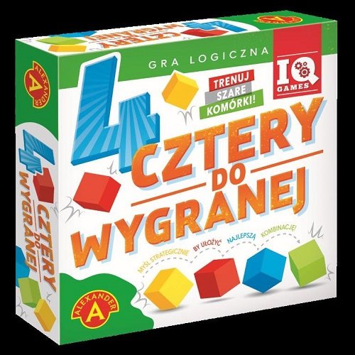 Opis produktuZasady bezpieczeństwa,,Cztery do wygranej"" to oparta na prostych zasadach gra, która dostarczy satysfakcji każdemu. Do dyspozycji mamy 25 kości w pięciu kolorach. Zabawa polega na losowym bądź wskazanym w instrukcji ułożeniu ich na matrycy. Następnie każdy z graczy wybiera kolor swoich kości. Od tego momentu musimy ułożyć cztery kości w swoim kolorze w linii prostej, wzdłuż, w poprzek lub po przekątnej. Liczy się także ułożenie kości w kwadracie obok siebie. Ruchy wykonujemy zamieniając miejscami swoje kości z kośćmi w innym kolorze. Trudności całej operacji dodaje fakt, że nie wolno przestawiać nam kości przeciwnika. 3 warianty gry sprawią, że nigdy się nie znudzisz. Zalety gry: