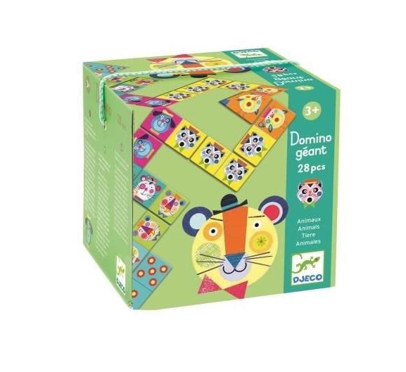 Gra tekturowa dla dzieci domino.Bardzo duże prostokąty ( 28 elementy o wymiarach 16 x 7,6 cm ) z rysunkami zwierząt z jednej strony,a z kwiatkami do liczenia z drugiej strony.Walory edukacyjne:nauka spostrzegawczości,koncentarcji,odwzorowywania,wyobraźni,nauka liczenia.Wiek:3 +.Materiał : tekturaWielkość opakowania:17 x 17 x 17 cm
