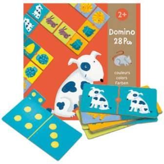Gra tekturowa dla dzieci domino.Kolorowe prostokąty o wymiarach 6,5 x 13 cm z rysunkami zwierząt w pojazdach z jednej strony,a z kropkami do liczenia z drugiej strony.28 elementówWalory edukacyjne:nauka spostrzegawczości,koncentracji,odwzorowywania,wyobraźni i nauka liczenia.Wiek:+3Wymiar opakowania:14,5x14,5x14,5 cm