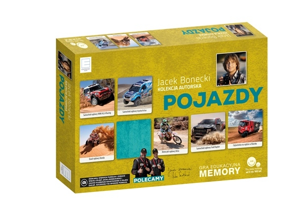 Kolekcja autorska znanego i cenionego fotografa Jacka Boneckiego. Doskonała zabawa dla całej rodziny (od 3 do 100 lat).Zagraj razem z dzieckiem w memory i znajdź 24 pary zdjęć pojazdów wykonanych przez Jacka Boneckiego podczas rajdów i ekspedycji w różnych zakątkach świata.