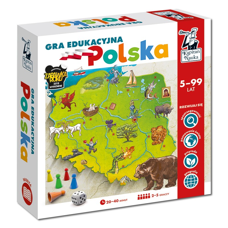 Gra edukacyjna Polska to atrakcyjna propozycja różnych wariantów rozgrywki dla głodnych wrażeń graczy już od 5 roku życia! Proste zasady, zacięta gra oraz atrakcyjna szata graficzna wciągną zarówno dzieci, młodzież jak i dorosłych.