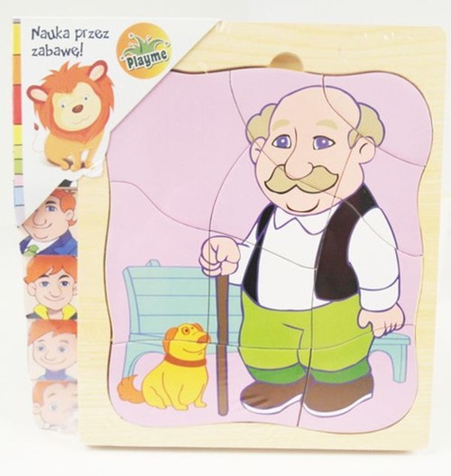 Puzzle drewniane z postaciami.