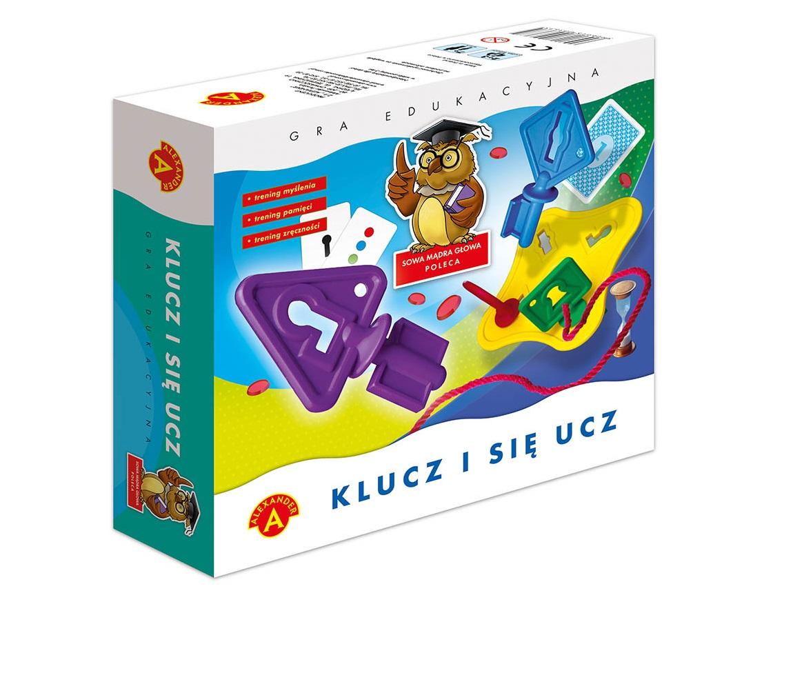 Klucz i się ucz - edukacyjna gra łącząca emocjonującą zabawę z ćwiczeniem spostrzegawczości, pamięci oraz prawidłowego kojarzenia pokrewieństwa kształtów. Gra zmusza również do ćwiczeń zręczności i manualnej precyzji.